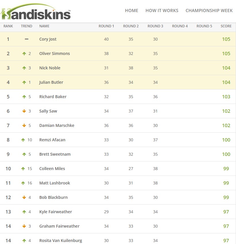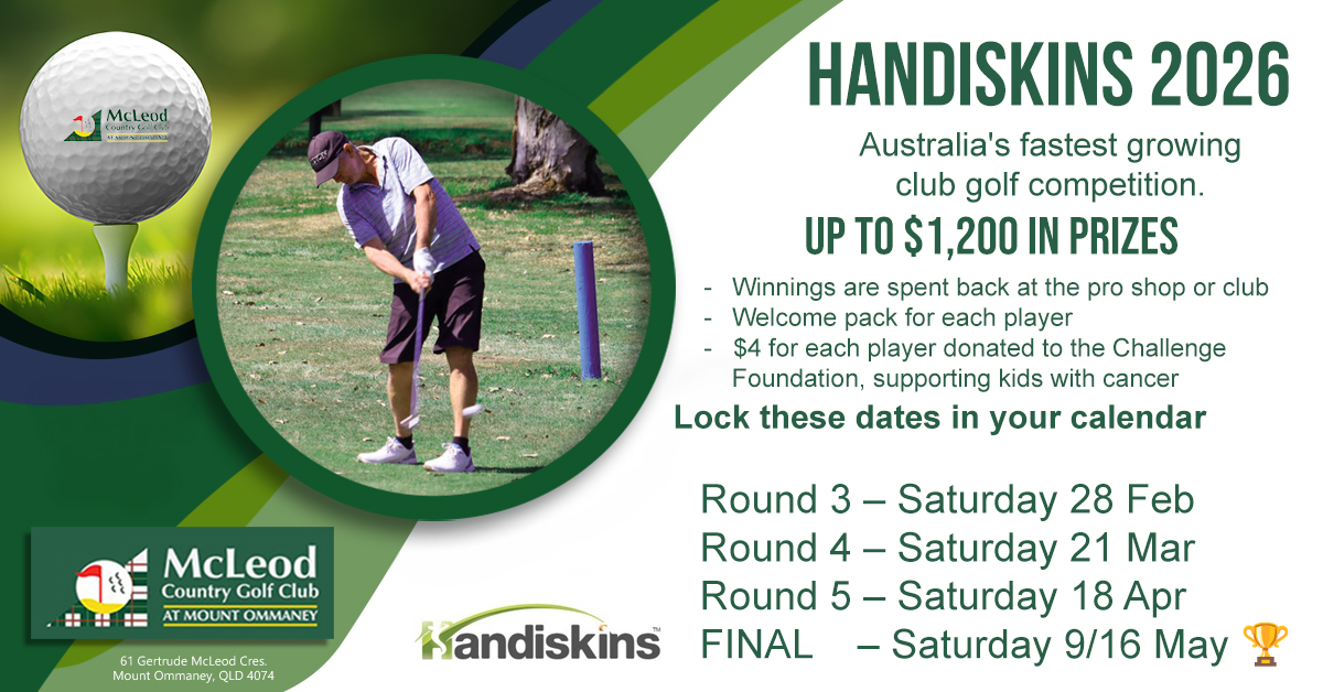 • At the end of the five qualifying rounds the top four players will play in a skins final for the chance to win a share of up to $1,200* in club and or/proshop vouchers *conditions apply – prize money subject to number of registered players – minimum 40 players required for $1,200 prize money). Refer to Handiskins website prize pool table for reduced registered players