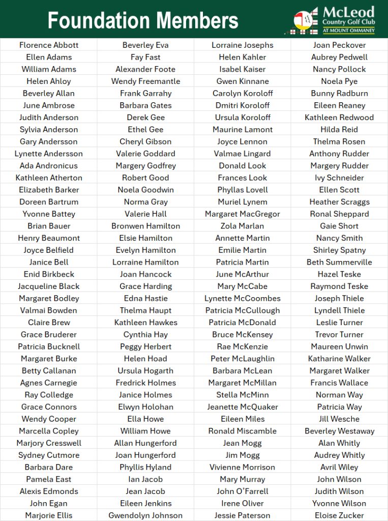 Everyone at McLeod Country Golf Club would like to thank all our Members and Fellow past Presidents for their exceptional work in getting McLeod Golf Club to where it is today.